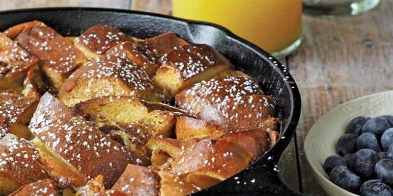 - Remove from the oven. Use a small sieve or tea strainer to dust the confectioners’ sugar over the top. Serve immediately, straight from the skillet.