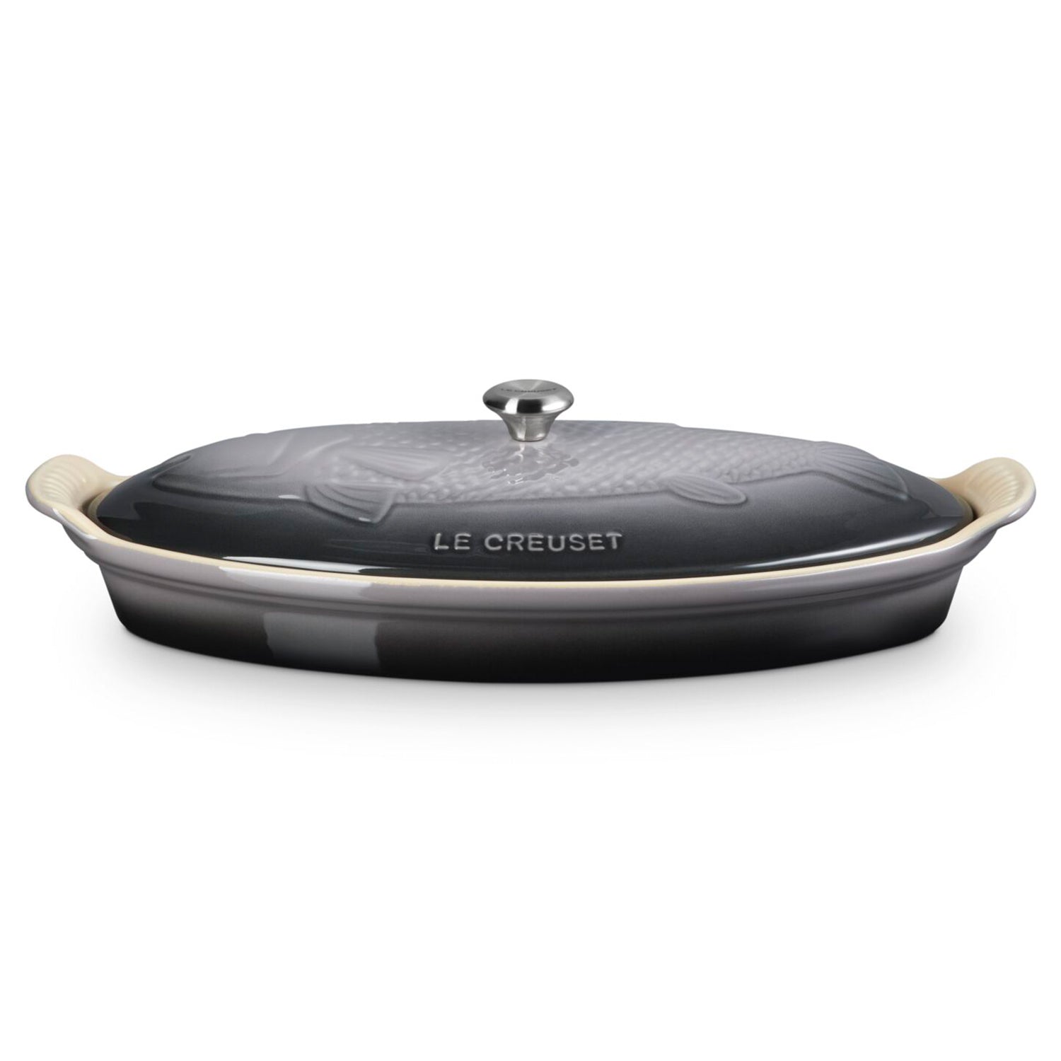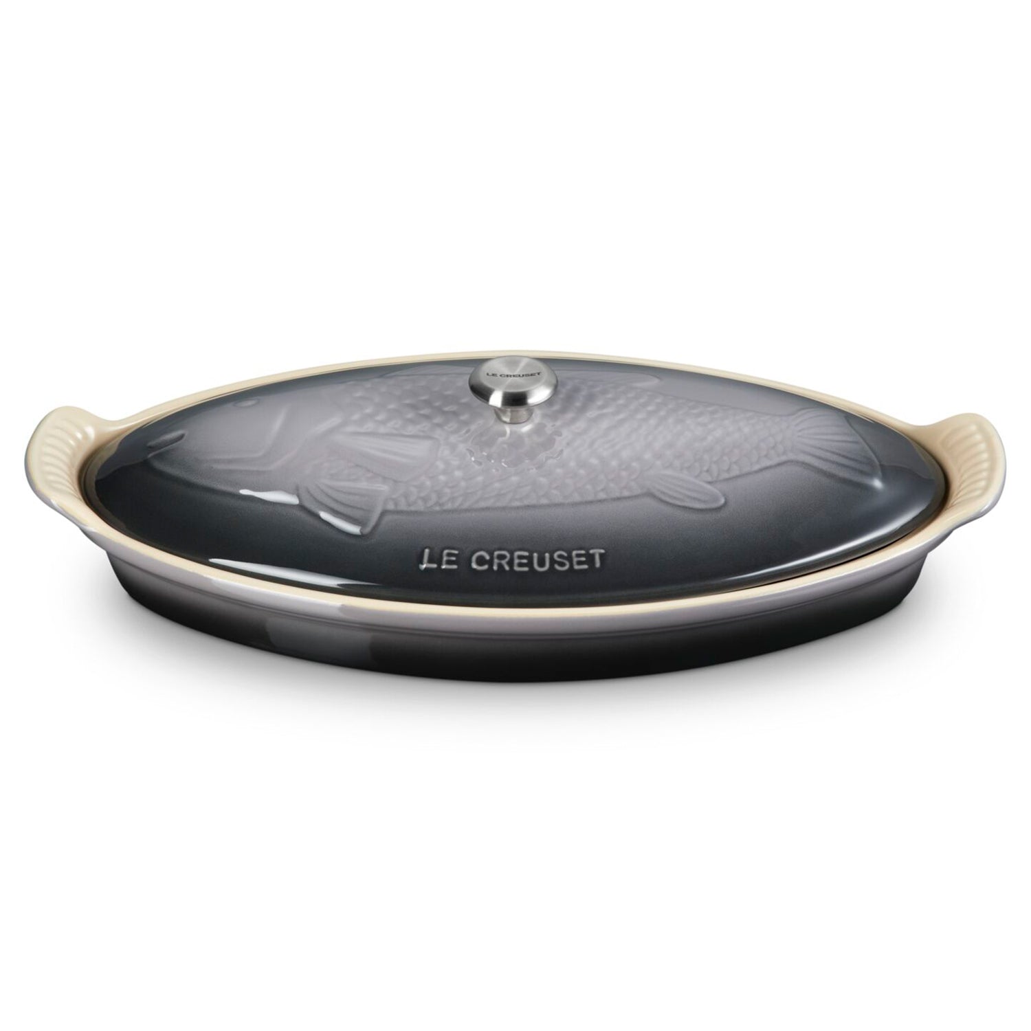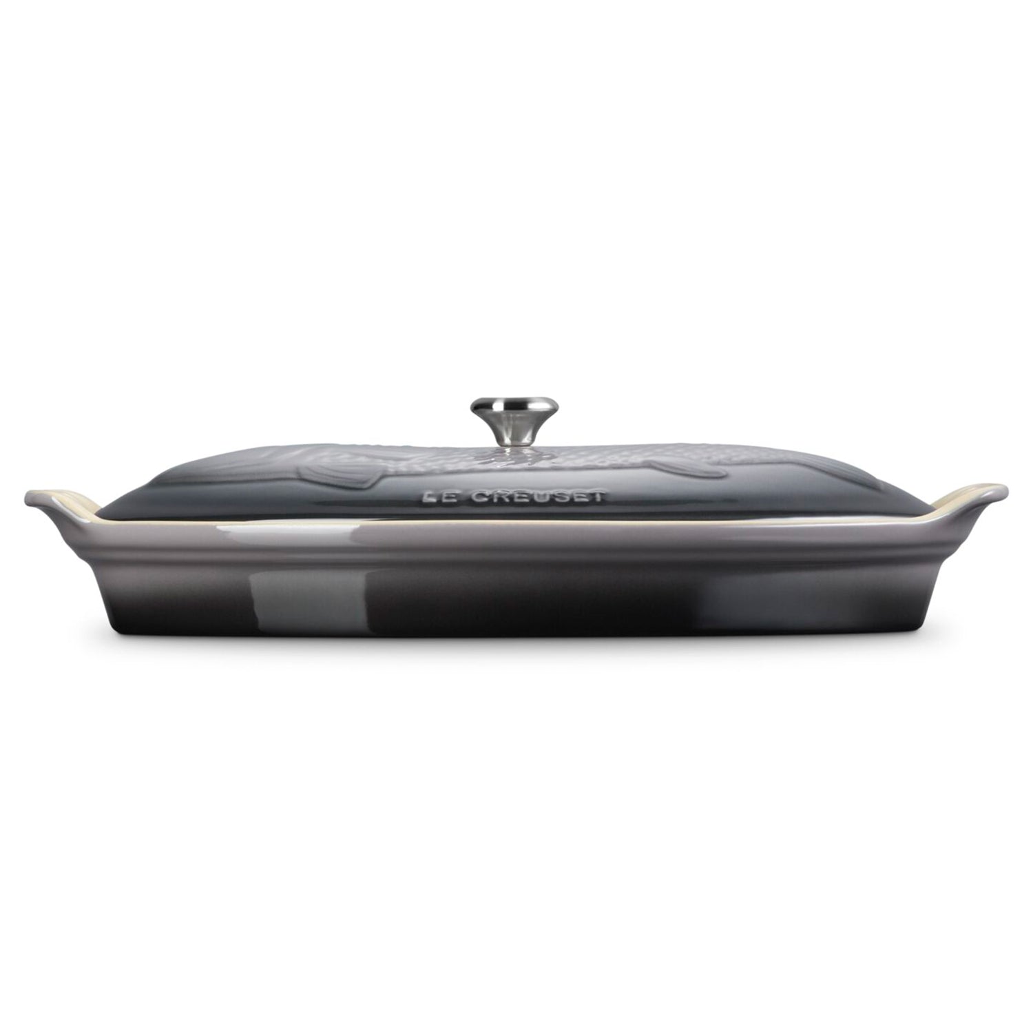 Le Creuset 1.7 qt. Fish Baker w/ Gold Knob - Oyster