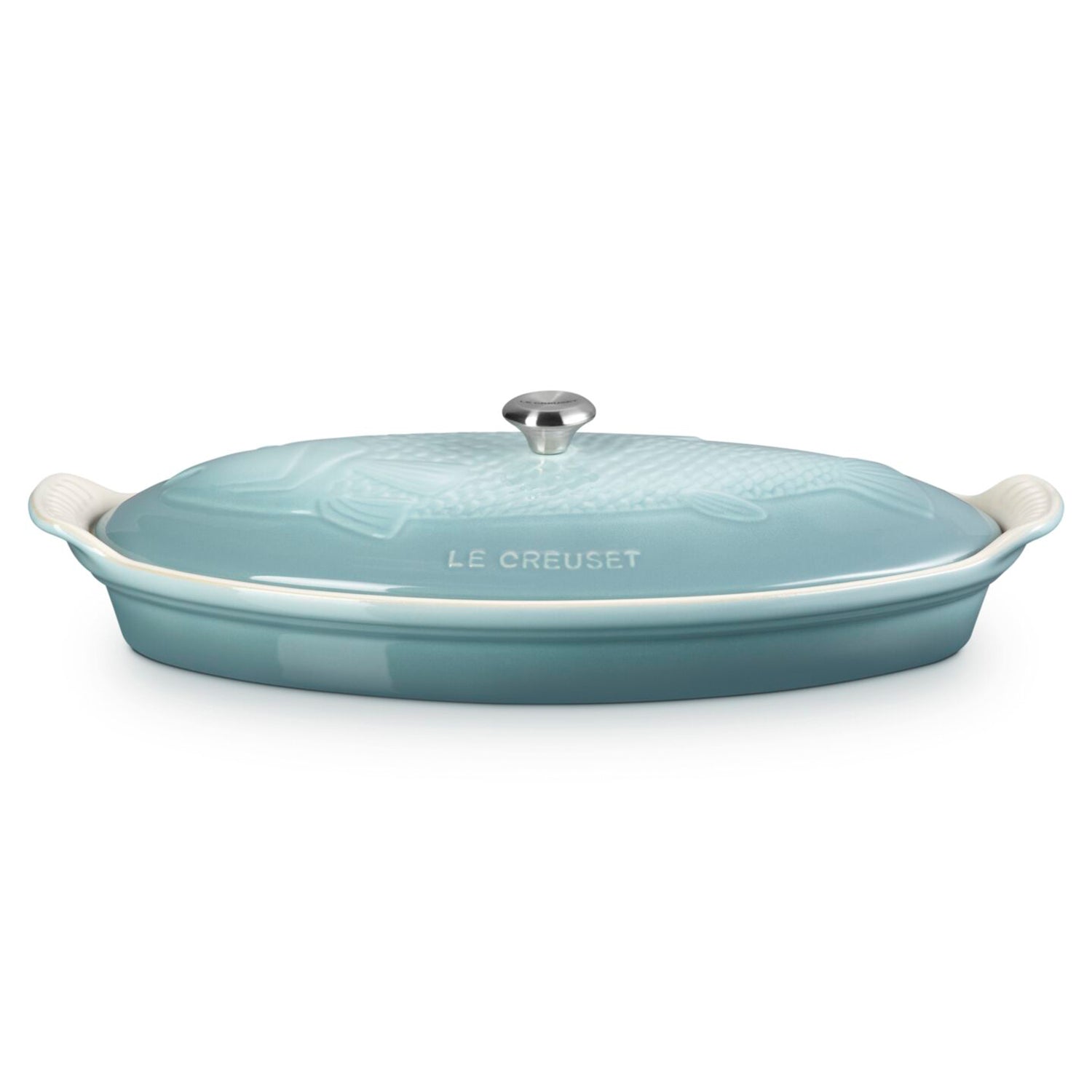 Le Creuset 1.7 qt. Fish Baker w/ Gold Knob - Sea Salt