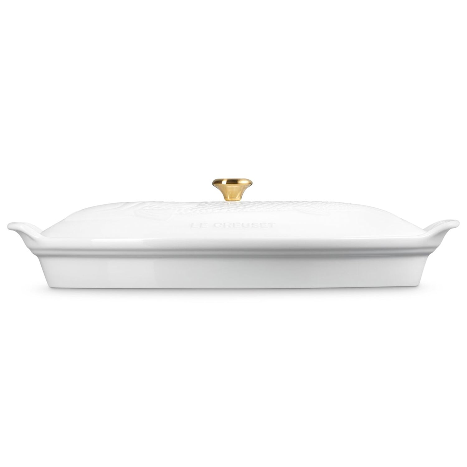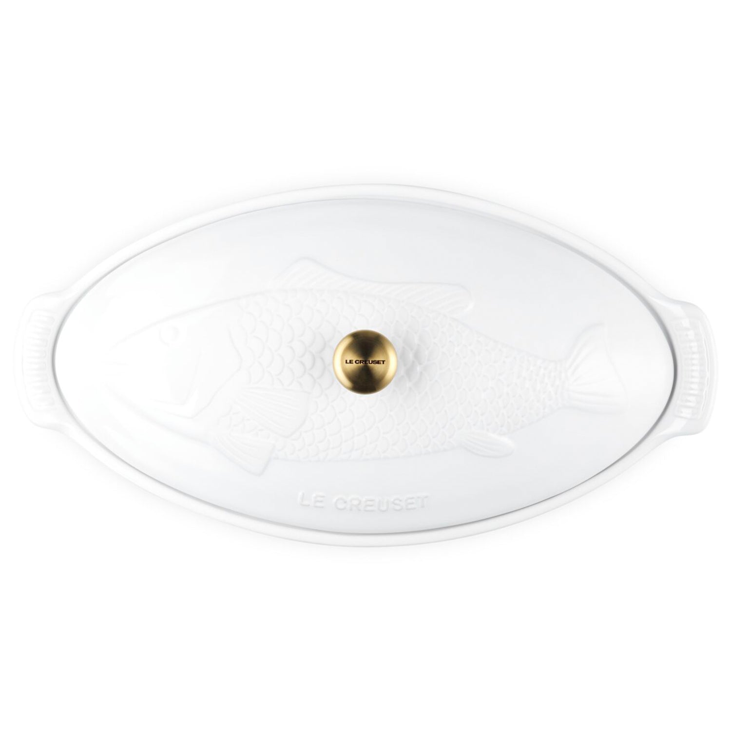 Le Creuset 1.7 qt. Fish Baker w/ Gold Knob - White