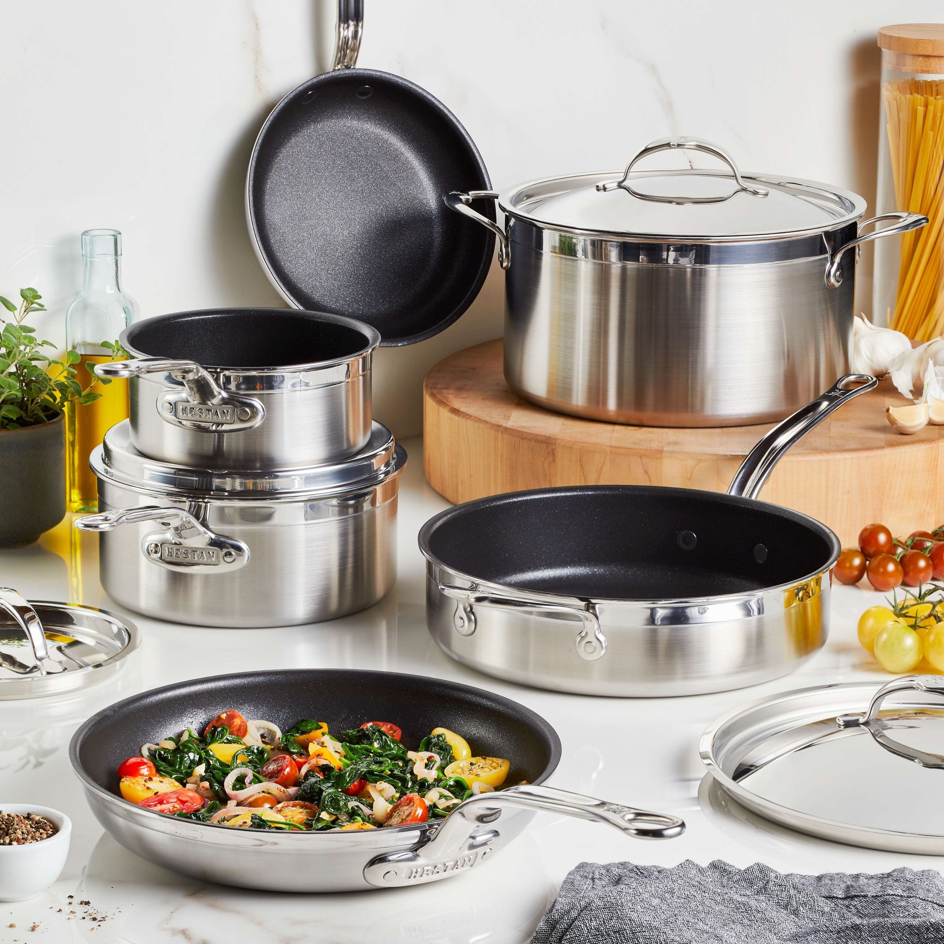 Hestan ProBond TITUM 10-Piece TITUM™ NS Set: 8.5" & 11" Open Skillets, 1.5qt & 3.0qt Covered Saucepans, 3.5qt Covered Sauté w/helper handle, 8.0qt Covered Stockpot