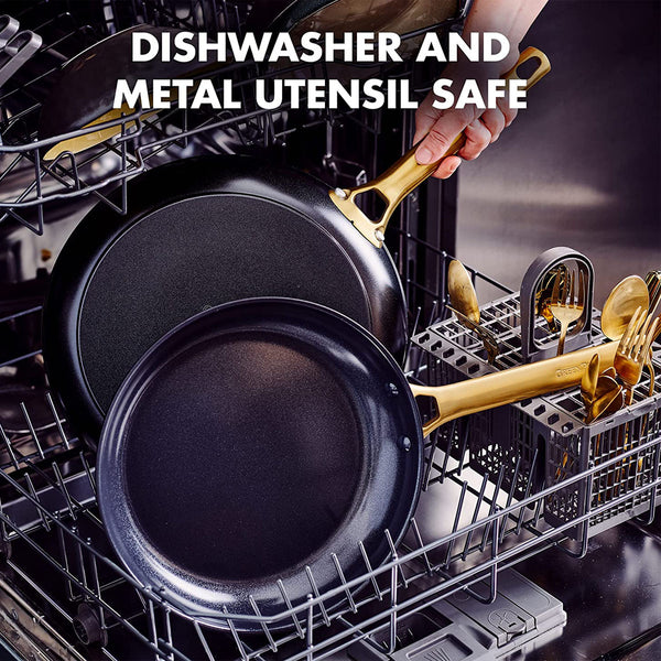 GREEN PAN RESERVE CERAMIC NONSTICK 5-PIECE COOKWARE SET - BLACK WITH GOLD-TONE HANDLES
