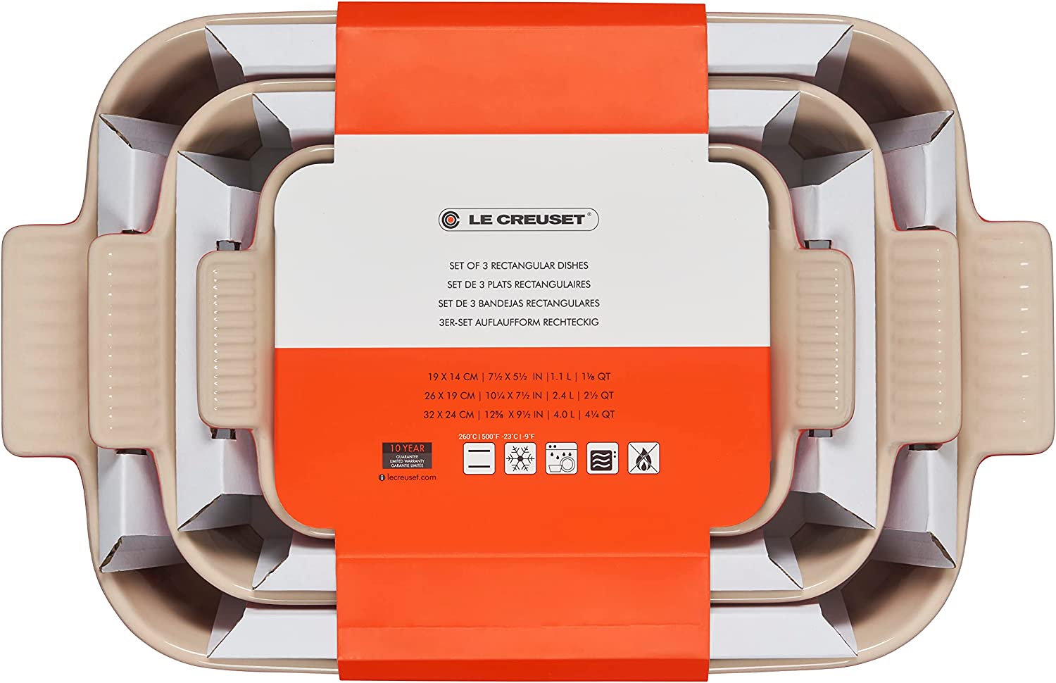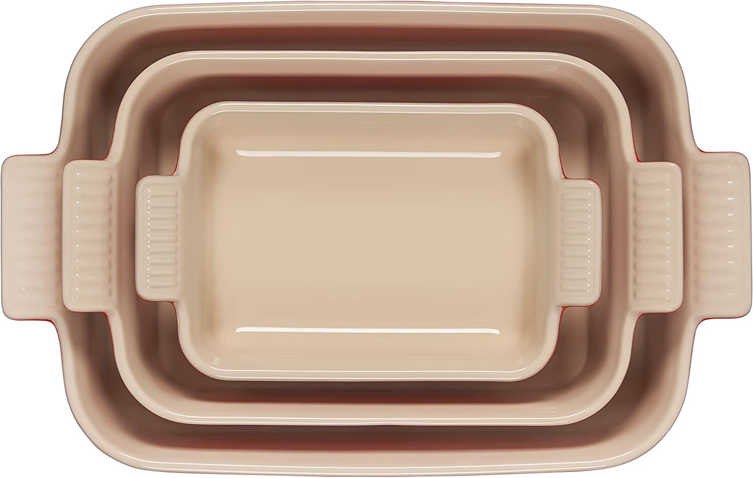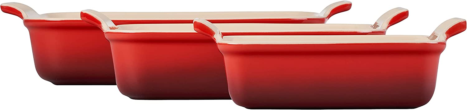 Le Creuset 1.1 qt., 2.5 qt. & 4 qt. Heritage Set of 3 Rectangular Dishes - Cerise