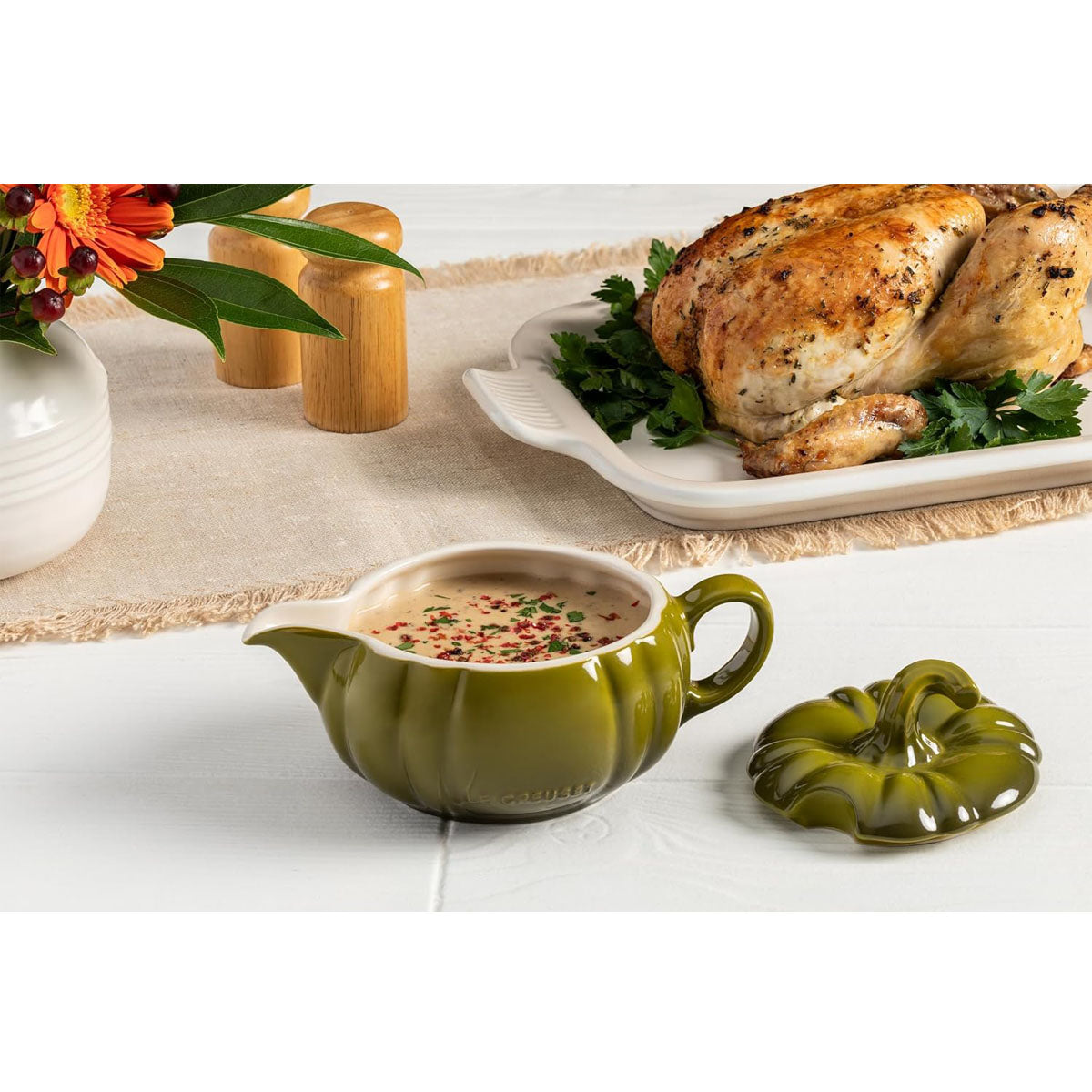 Le Creuset 14 oz. Pumpkin Gravy Boat with Lid - White