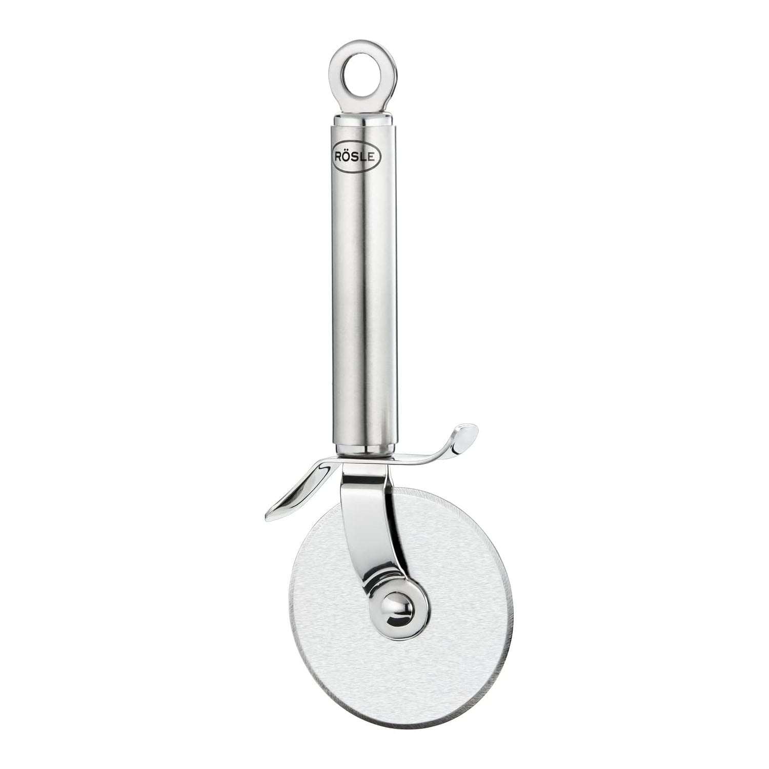 One of Rösle's superb kitchen tools, this 7.8-inch tool has a 2.7-inch cutting wheel honed to a sharp edge so it neatly slices as it rolls through a pizza. Like all Rösle tools, utensils, and Open Kitchen storage components, the opener is made of 18/10 stainless steel for rustproof beauty and long-lasting durability. The round handle has a satin finish to conceal fingerprints. It's sealed against water and has a hanging ring so the pizza cutter can be conveniently stored on a hook in Rösle's Open Kitchen system of basic rails and grid walls--or hung on any hook or peg. The pizza cutter is sturdy, balanced, and exceptionally comfortable in the hand. All Rösle products dishwasher-safe, and carry a lifetime warranty against defects. --Fred Brack