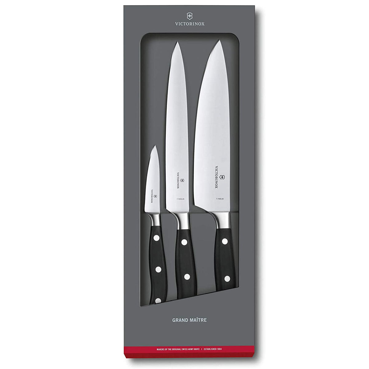 Victorinox Grand Maitre, Forged 3-Piece Chef's Set (3.5" Paring, 8" Slicing, 8" Chef's), Black